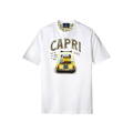 T-shirt made of 100% pure cotton in the bright optical white shade. The graphic depicts the inscription “Capri, a little’ of the sea and everything passes”, accompanied by the illustration of a vintage car embellished with lemons and the inscription Italy, a direct reference to the Mediterranean atmosphere and the timeless charm of the coast.