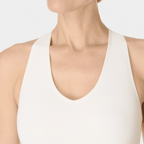 The Stamina Soft Touch Voop Bra is your new go-to for light support and maximum comfort. This seamless sports bra from our bestselling seamless collection combines stretchy, moisture-wicking fabric with compression technology and a stylish voop neckline. The Stamina Soft Touch Voop Bra offers light support thanks to a contoured underband and strategically placed ribbed panels, while the racerback design gives you complete freedom of movement. No padding, no chafing—pure comfort from your yoga flow to your coffee date. Made from a high-quality polyamide-elastane blend that moves just like you do. Feel free.