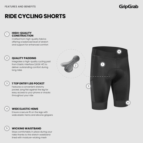 Crafted from high-quality stretch polyamide fabric offering UPF50+ sun protection, the GripGrab RIDE Cycling Shorts are an essential for riders, providing a gently supportive fit for optimal comfort.