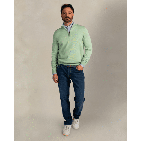 Katoenen pull met halve zip